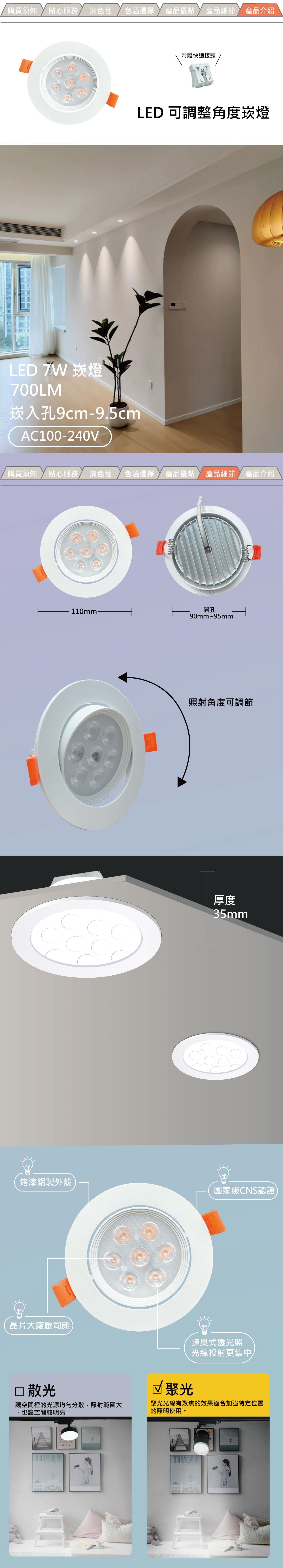 【開孔9cm】LED 7W 7珠 聚光可調整角度崁燈
