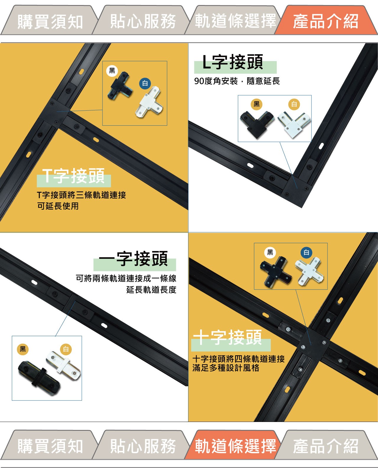 軌道接頭 黑白色 適用軌道條 接頭 一字 L字 十字 T字